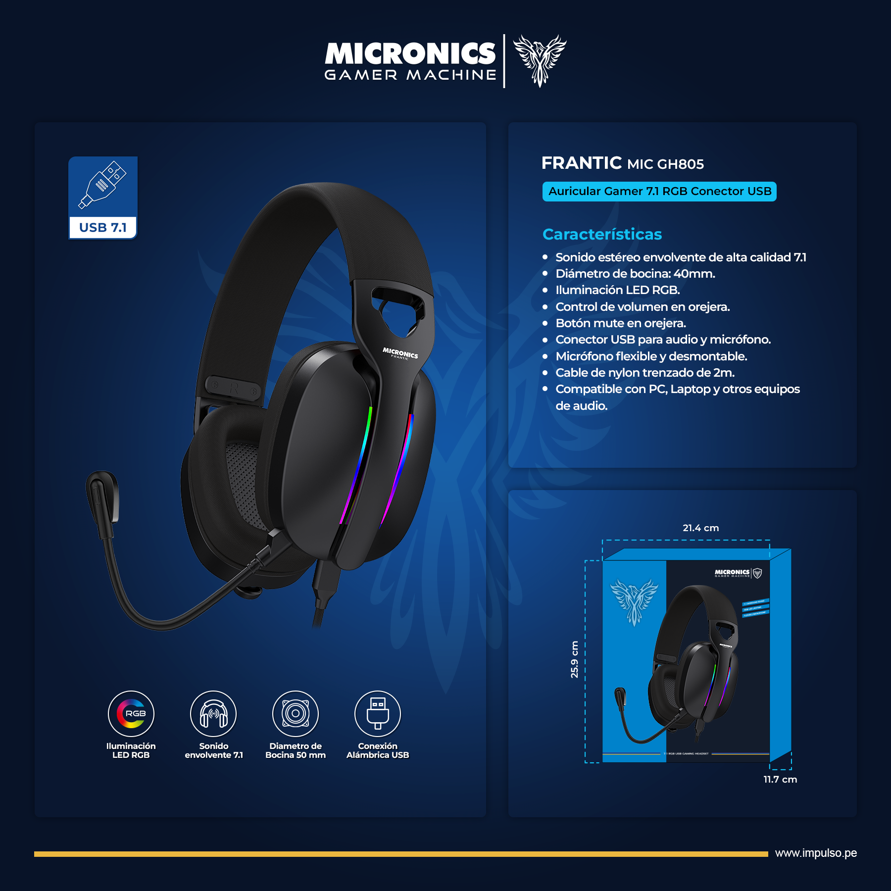 • Nombre: Auricular Gamer Machine 7.1 RGB