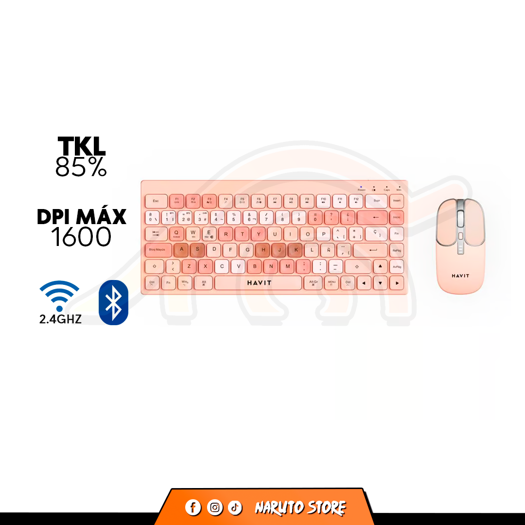 KIT TECLADO Y MOUSE HAVIT KB831WB-SP, INALAMBRICO/BT, ROSA