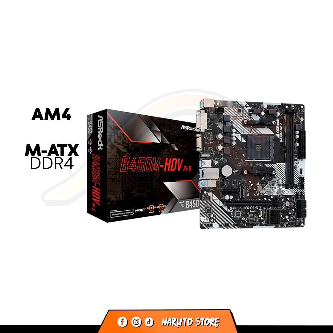 MAINBOARD ASROCK B450M-HDV R4.0, AM4, AMD
