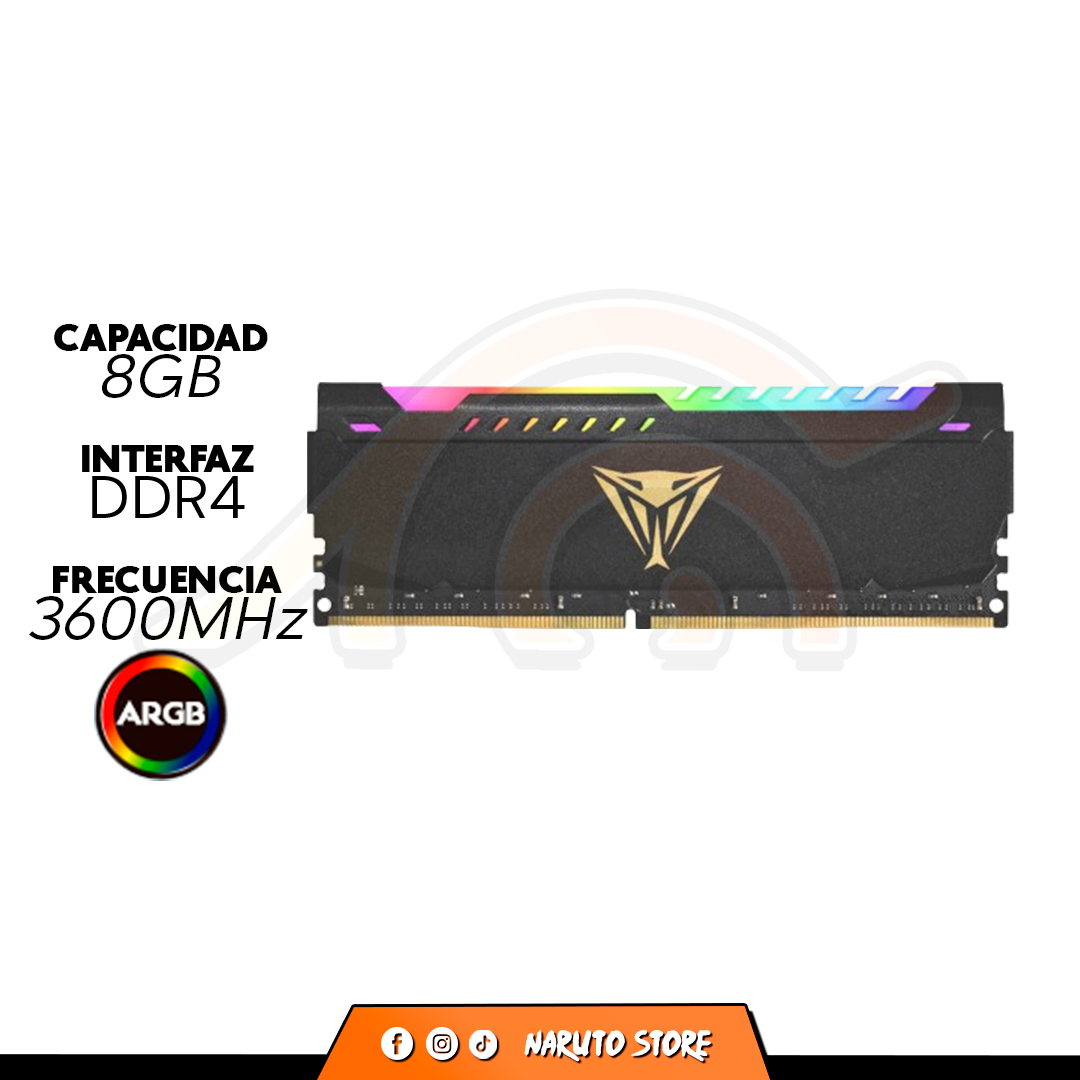 MEMORIA RAM, PATRIOT, VIPER STEEL RGB, 8GB DDR4 3600MHZ