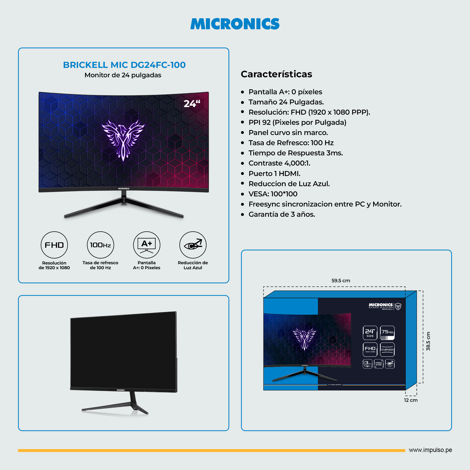 MONITOR MICRONICS DG24FC BRICKELL+ – 24P – CURVO – VA – FHD – 100HZ – 3MS – ALTO BRILLO