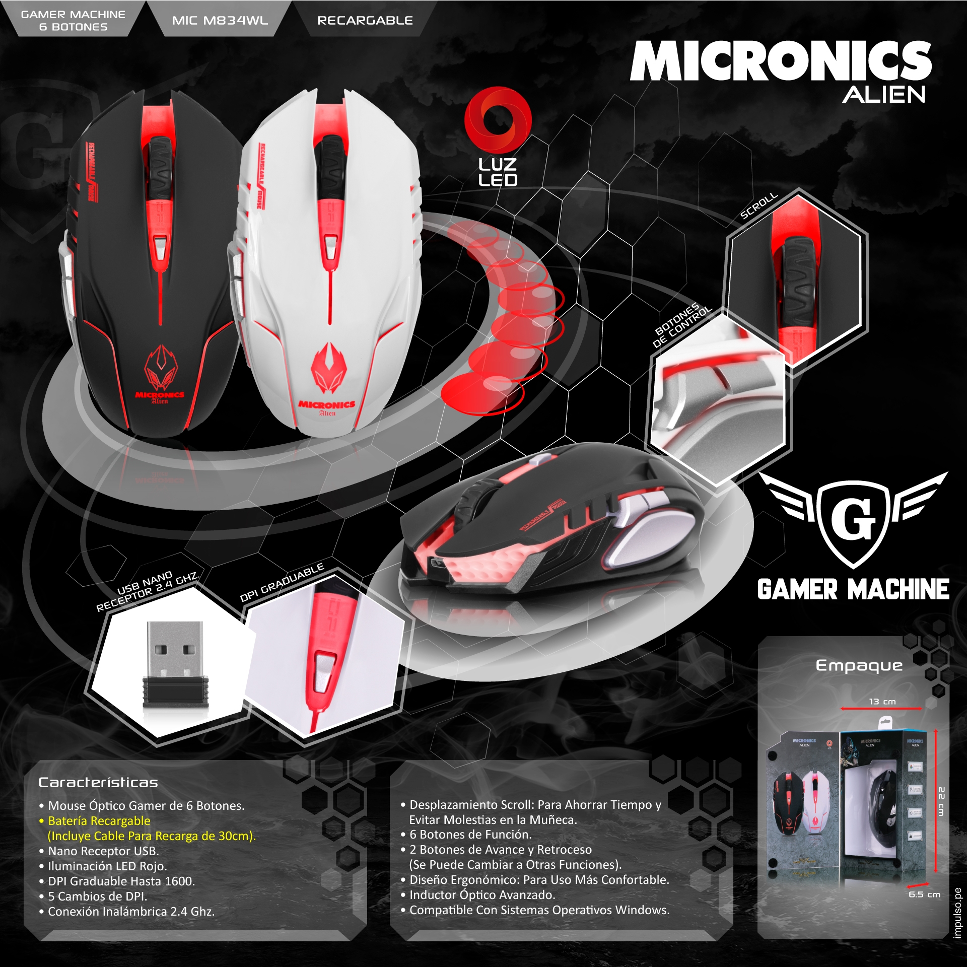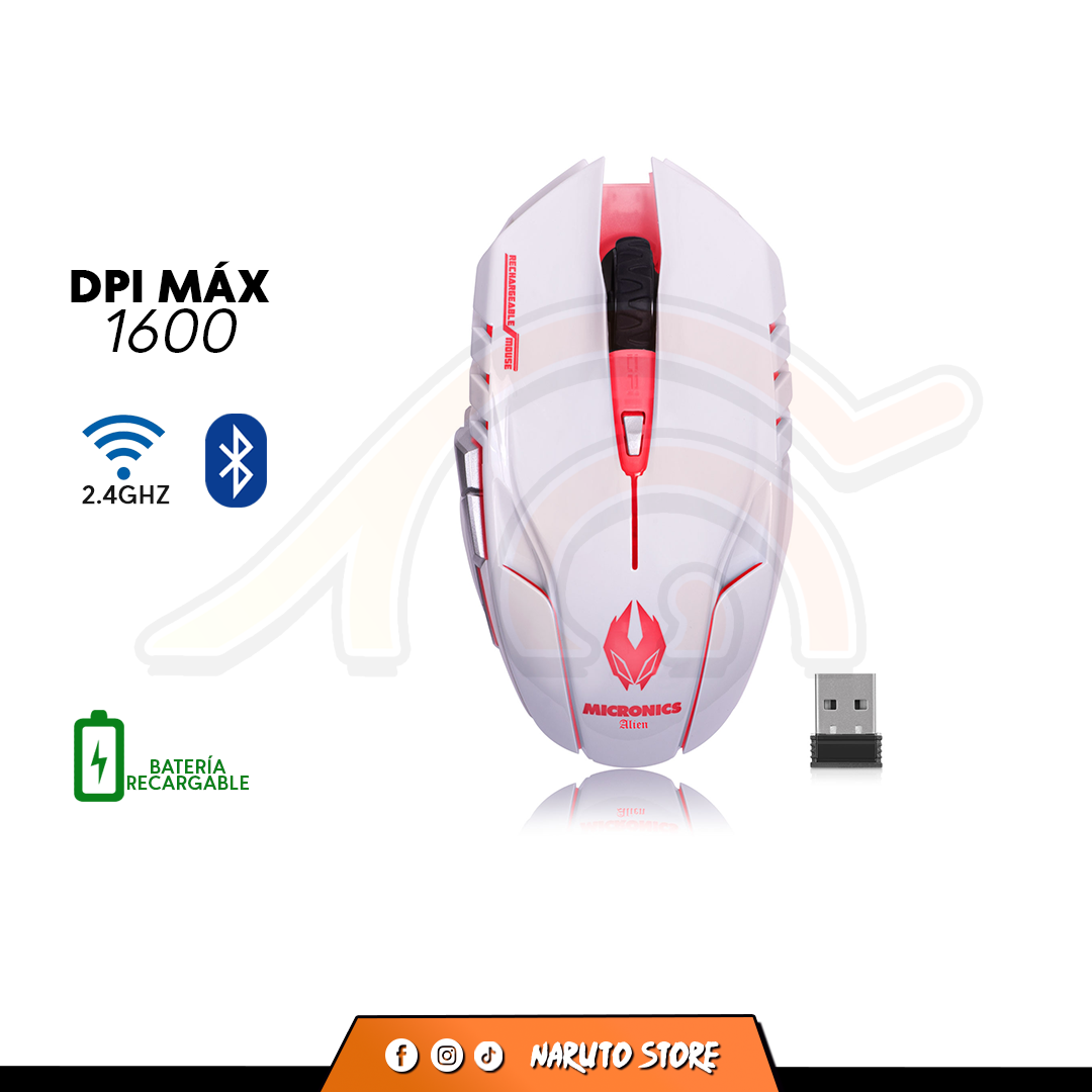MOUSE MICRONICS ALIEN MIC M834WL | INALAMBRICO | 1,600 DPI | ROJO | BLANCO