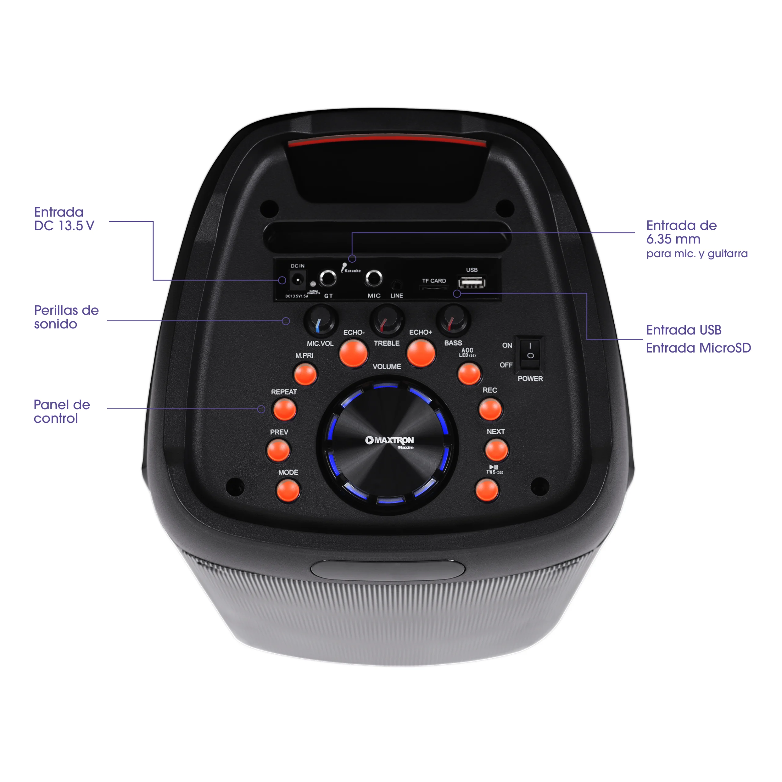 - Función TWS: Permite emparejar 2 dispositivos Bluetooth para sonido envolvente.