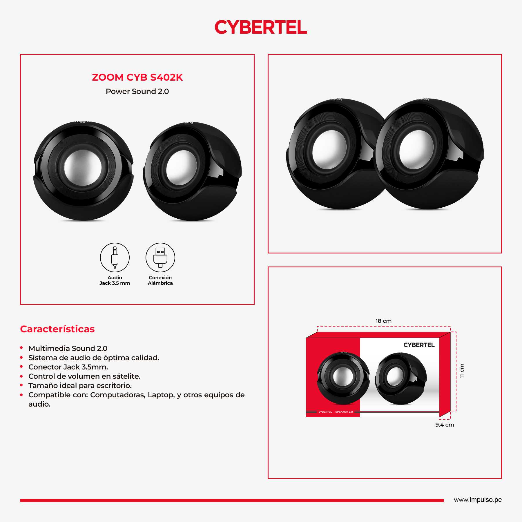 PARLANTE CYBERTEL ZOOM BLACK- CYB S402K