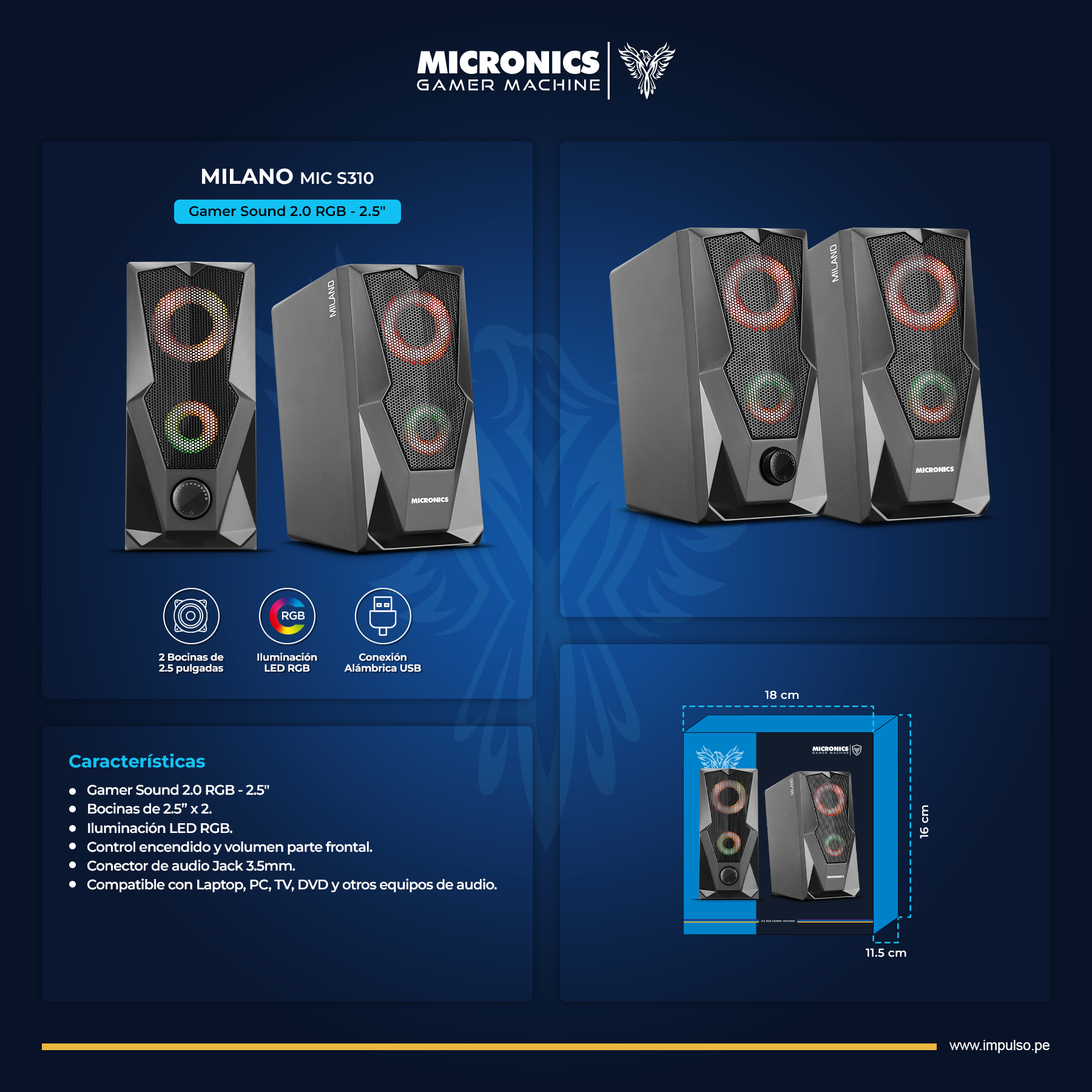 - Modelo: Gamer Sound 2.0 RGB – 2.5