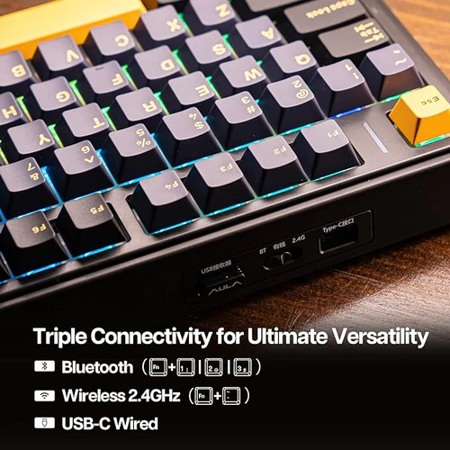 TECLADO AULA F75 | INALAMBRICO | MECANICO | SW-GRAY | RGB | NEGRO-AMARILLO