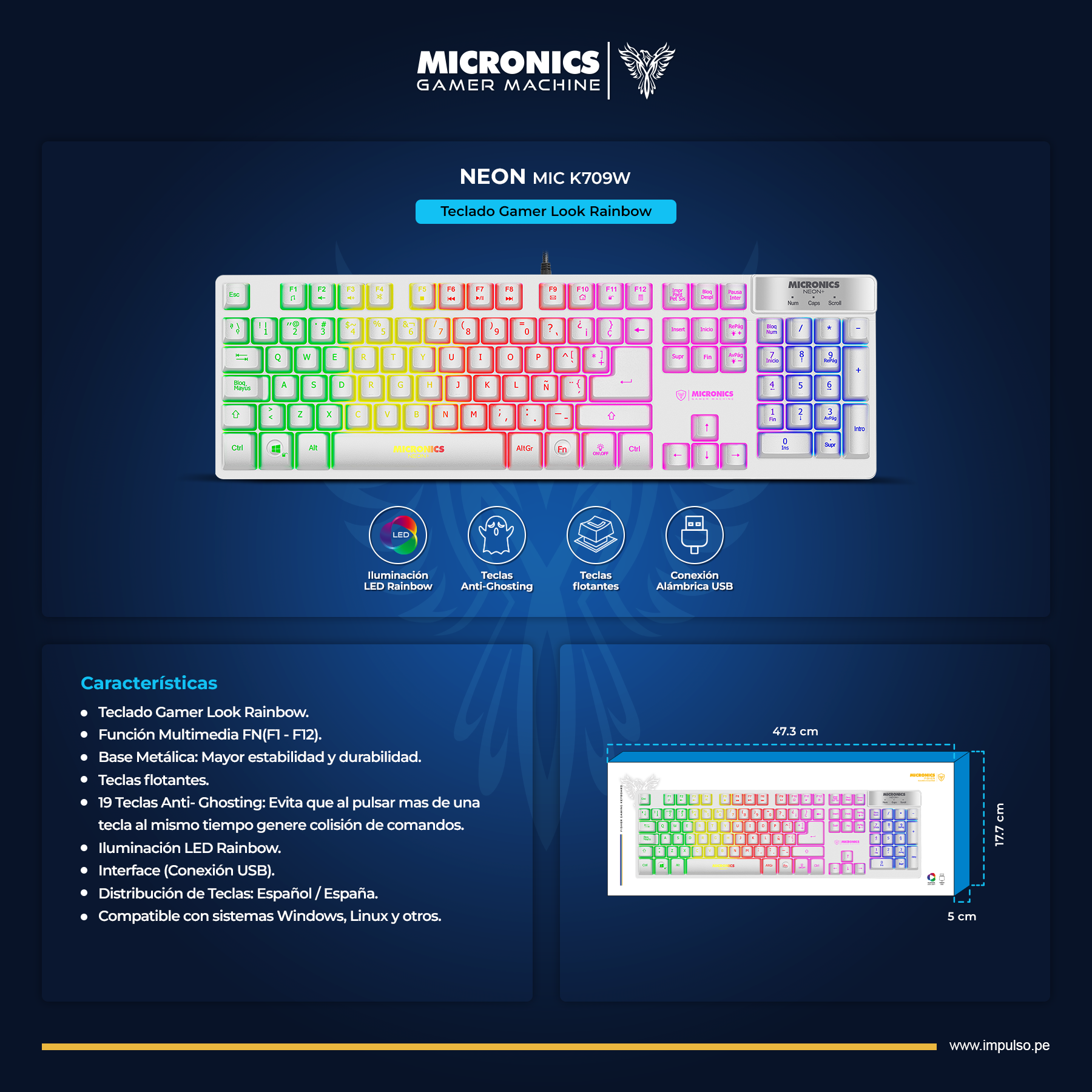 - 19 Teclas Anti-Ghosting: Evita la colisión de comandos al pulsar varias teclas simultáneamente.
